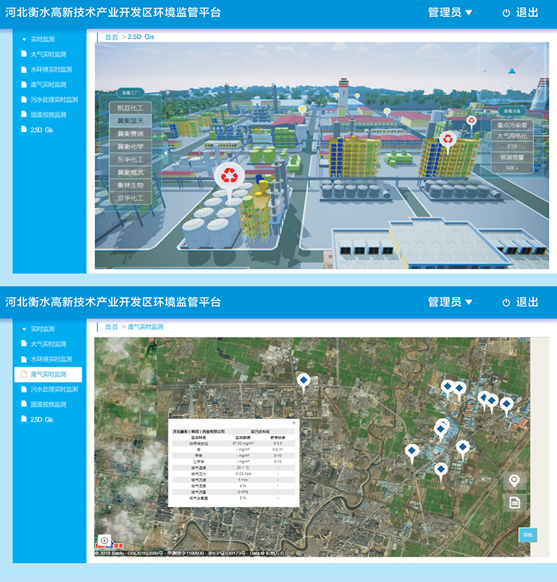 衡水高新区环境监管平台是以监测为手段,通过对实时数据的处理、分析实现预警功能。并通过对园区内废气、废水、危废情况进行实时显示、数据存储,建设信息资源整合共享机制和有关信息设施,让园区管理人员能够快速反应。