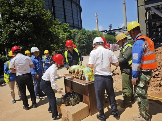 炎炎酷暑日,降温正当时。近日持续高温成为常态,施工现场职工默默奉献的精神在烈日酷暑下熠熠生辉,晒得通红的脸颊是他们最美的勋章。为关心一线职工辛苦,积极响应工会“关爱职工 夏送清凉”活动,8月2日,太阳成集团tyc122cc大气环境事业部党支部联合综合管理部、团支部代表一行前往湖南华菱湘潭钢铁有限公司2*135MW发电锅炉烟气超低排放项目施工现场,以实际行动把公司领导的关心送到项目部职工的心坎上。