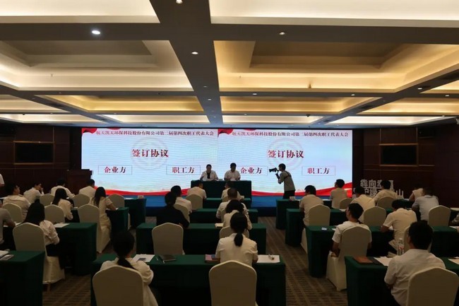 大会首先听取了航天凯天《2025年上半年行政工作报告》和《2025年上半年安全生产及职业健康工作报告》。随后,易世涛汇报了《2025年工资集体协商情况说明》。在民主表决环节,大会严格遵循各项程序,五项合同草案——《集体合同》《工资集体协议》《女职工权益保护专项集体合同》《职工技术创新专项集体合同》及《岗位技能绩效等级工资专项集体合同》均顺利获得投票通过。最终,职工与企业双方的首席代表在全体与会人员的共同见证下,正式签订了协商合同。