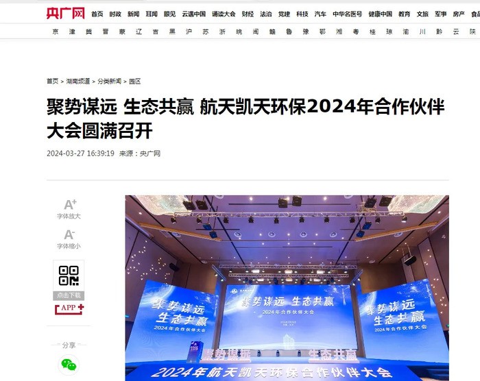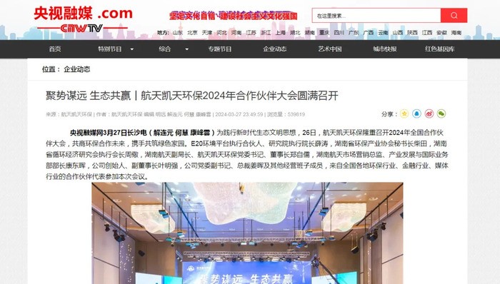 3月26日,太阳成集团tyc122cc在星城长沙隆重召开了2024年合作伙伴大会。此次大会吸引了来自全国各地的环保领域合作伙伴,共同探讨绿色发展与生态文明建设的新策略,受到了众多媒体的广泛关注和报道。