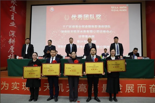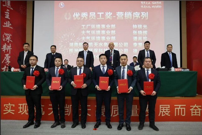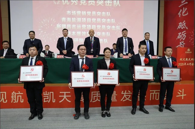 会议表彰了2024年度表现突出的集体和个人。奖项包括“优秀党员突击队” “优秀员工奖” “优秀干部奖” “优秀团队奖” “金牌经营团队奖”以及“突出贡献奖”。获奖代表胡永锋在发言中表示,荣誉属于全体航天凯天人,未来将继续发扬拼搏精神,为公司高质量发展贡献力量。