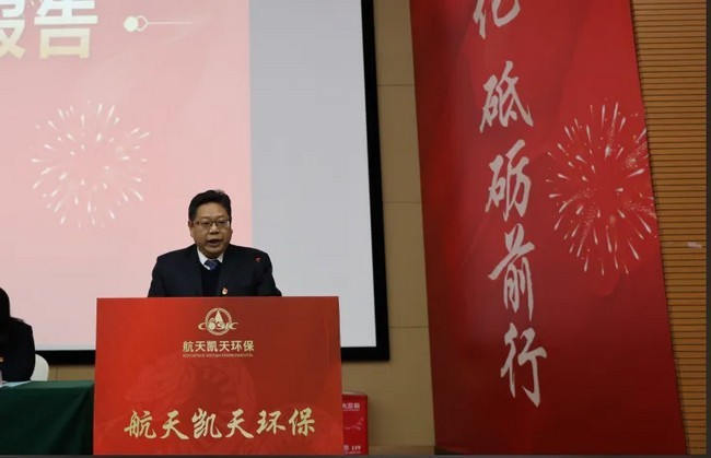公司总裁姜晖在会上作了题为:《聚焦主业 深耕厚植 推进三化 砥砺前行 为实现航天凯天高质量发展而奋斗》的工作报告。