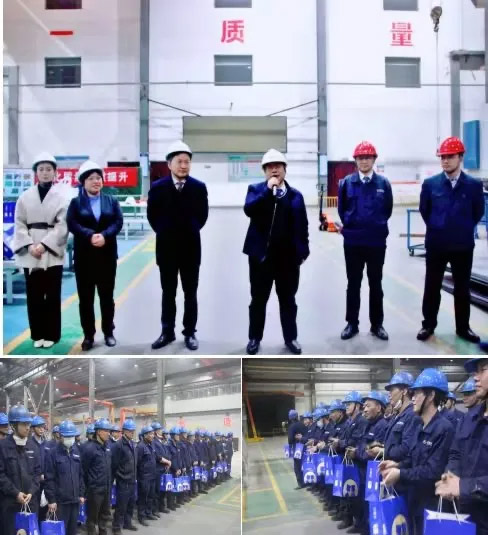 姜晖一行来到生产车间,到各工位上仔细察看了员工们热火朝天的工作状态,一边走一边听取环保装备事业部董事长曾毅夫、总经理周益辉、副总经理李刚等人的介绍,了解生产情况、生产进度及安全质量等方面情况,并将工会精心准备的慰问品分别送至车间加班工作人员手中。